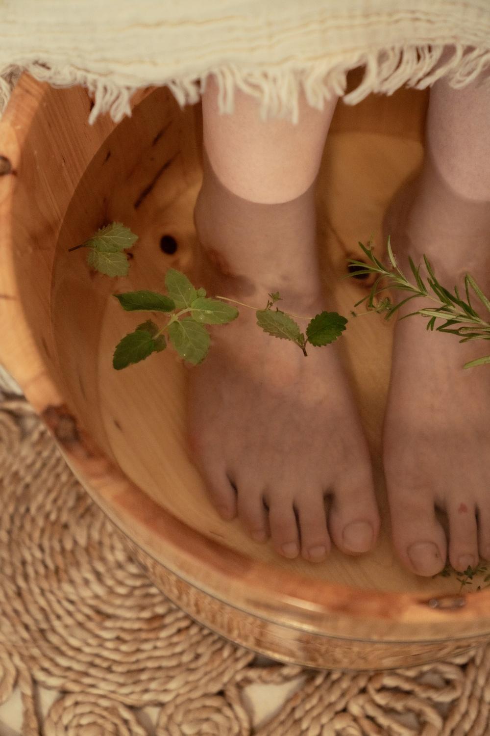 トリートメント前の足湯は、ハーブの
